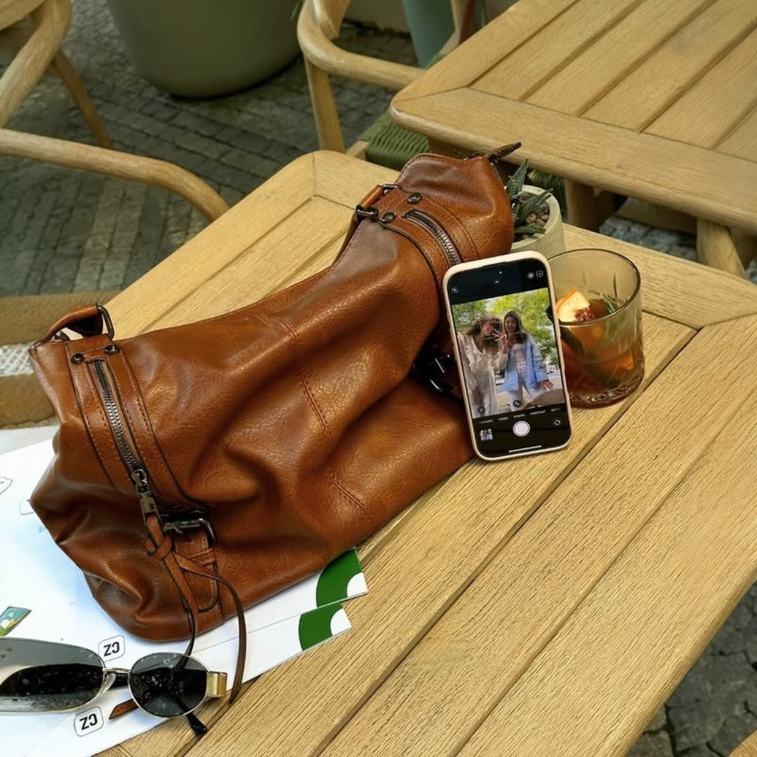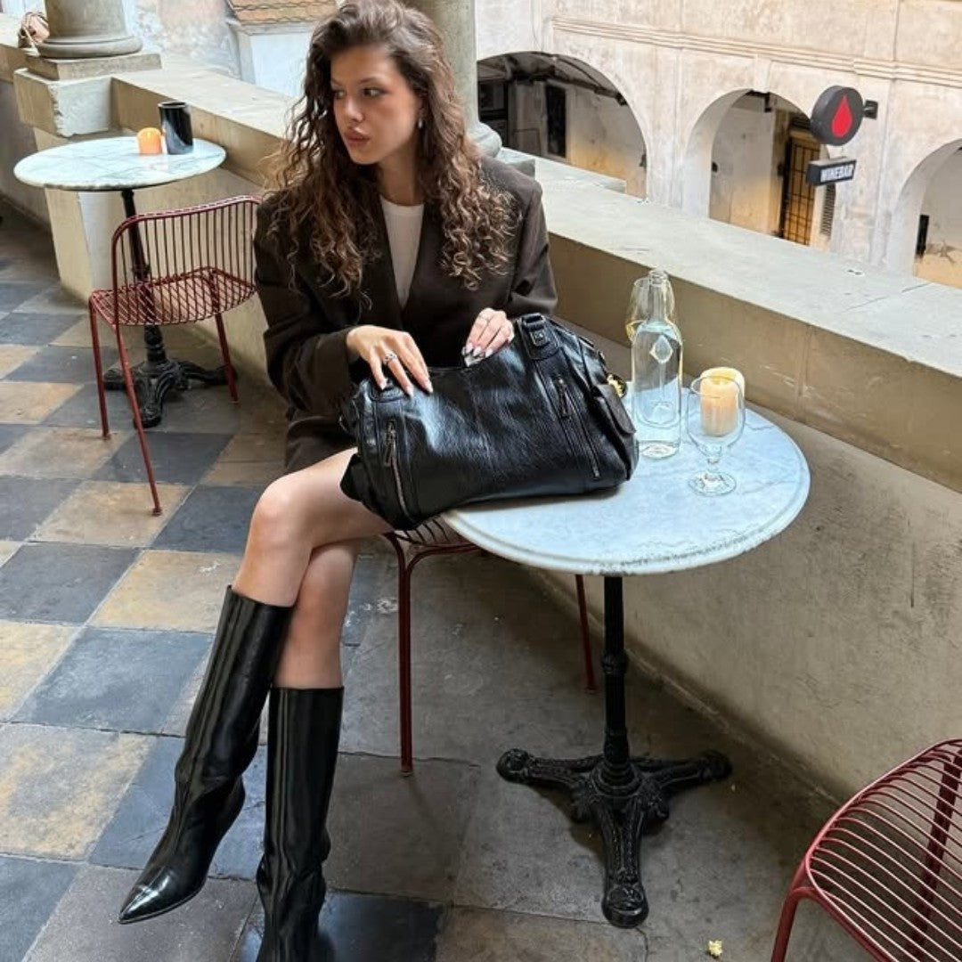 I bought the Angelina Bag in black and it instantly became my everyday bag. The big main zipper keeps everything safe and organized.